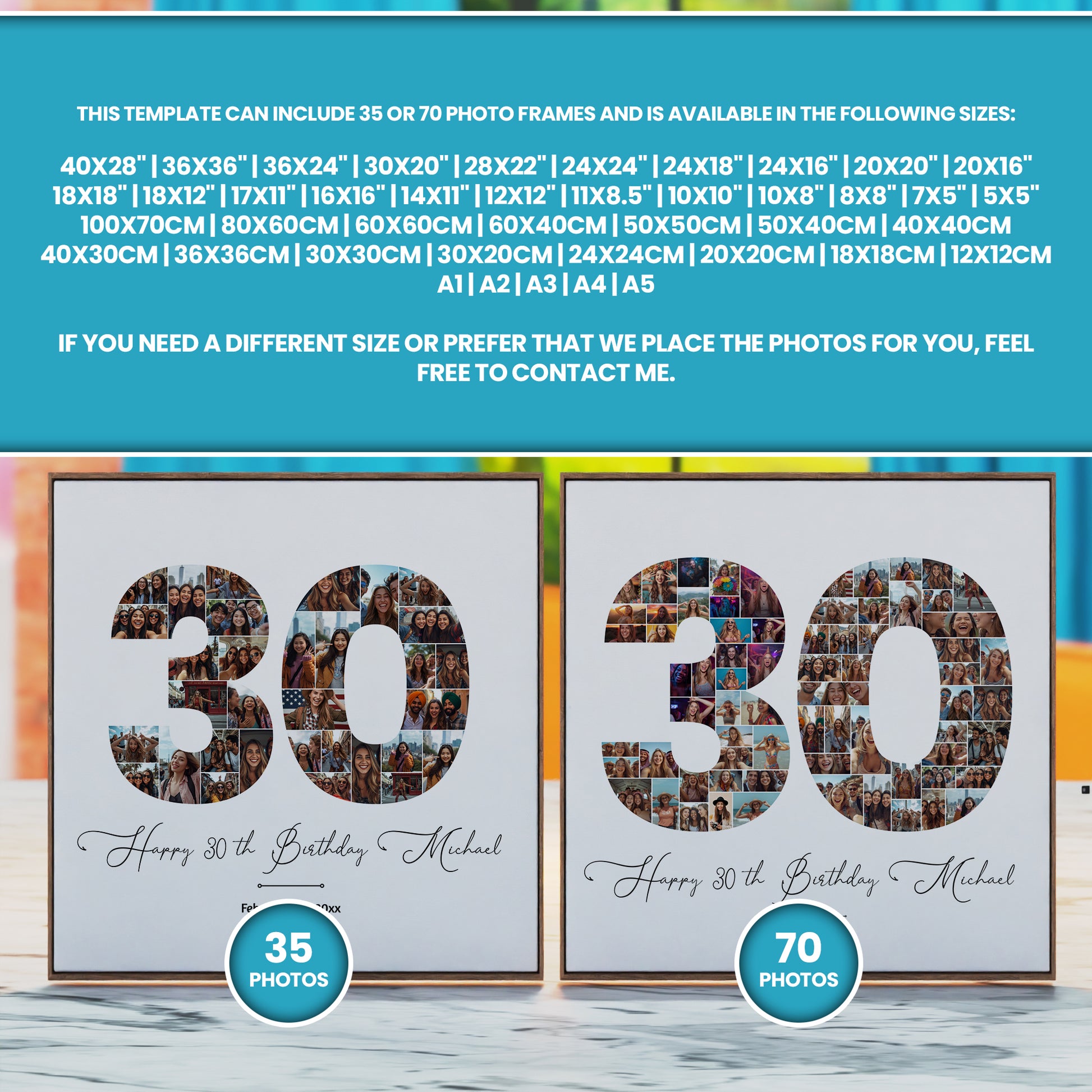 30th Birthday Photo Collage Template – Editable Canva Number Poster, Drag & Drop Picture Collage, Personalized 30th Birthday Gift