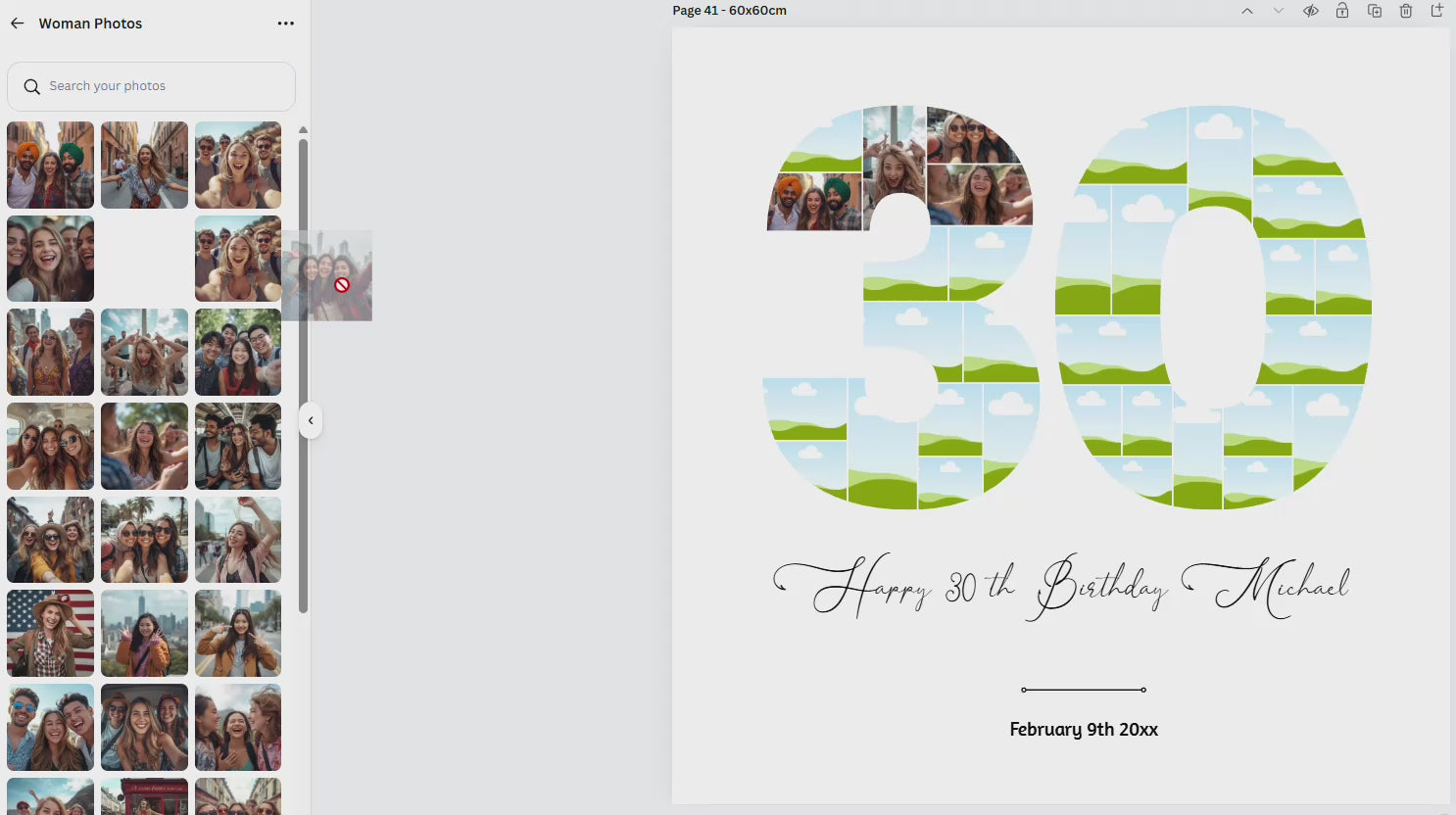 30th Birthday Photo Collage Template – Editable Canva Number Poster