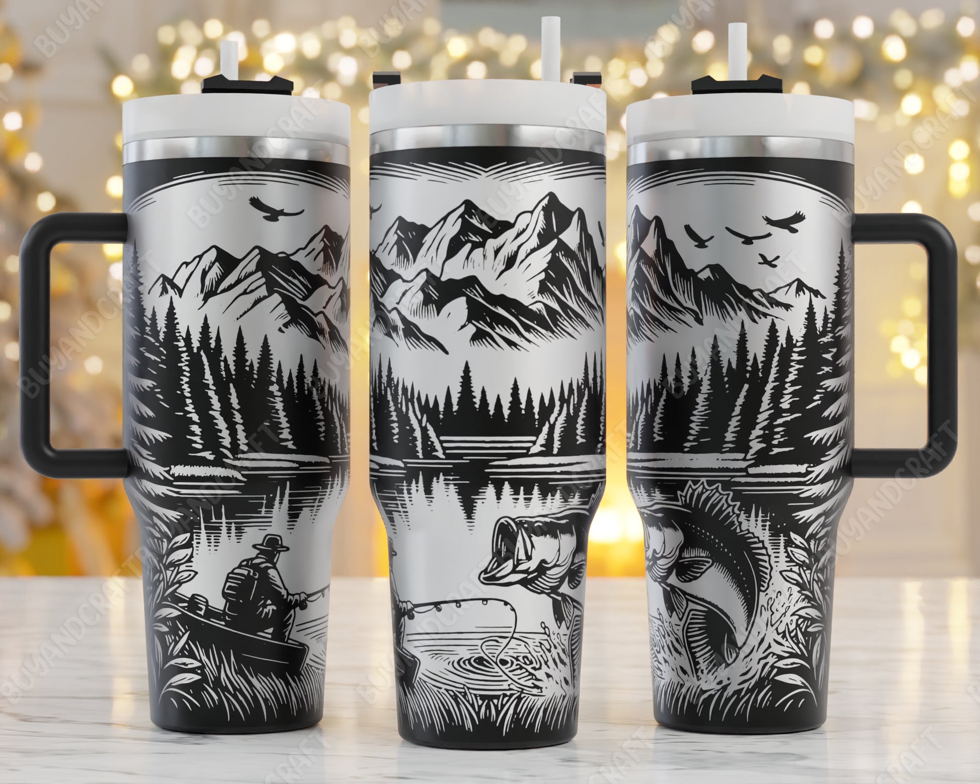40oz Tumbler Wrap, Fishing Svg Laser Engraved, Hunting Dad Svg, Bass Fishing 40oz Tumbler Laser Svg, Tumbler Wrap Designs