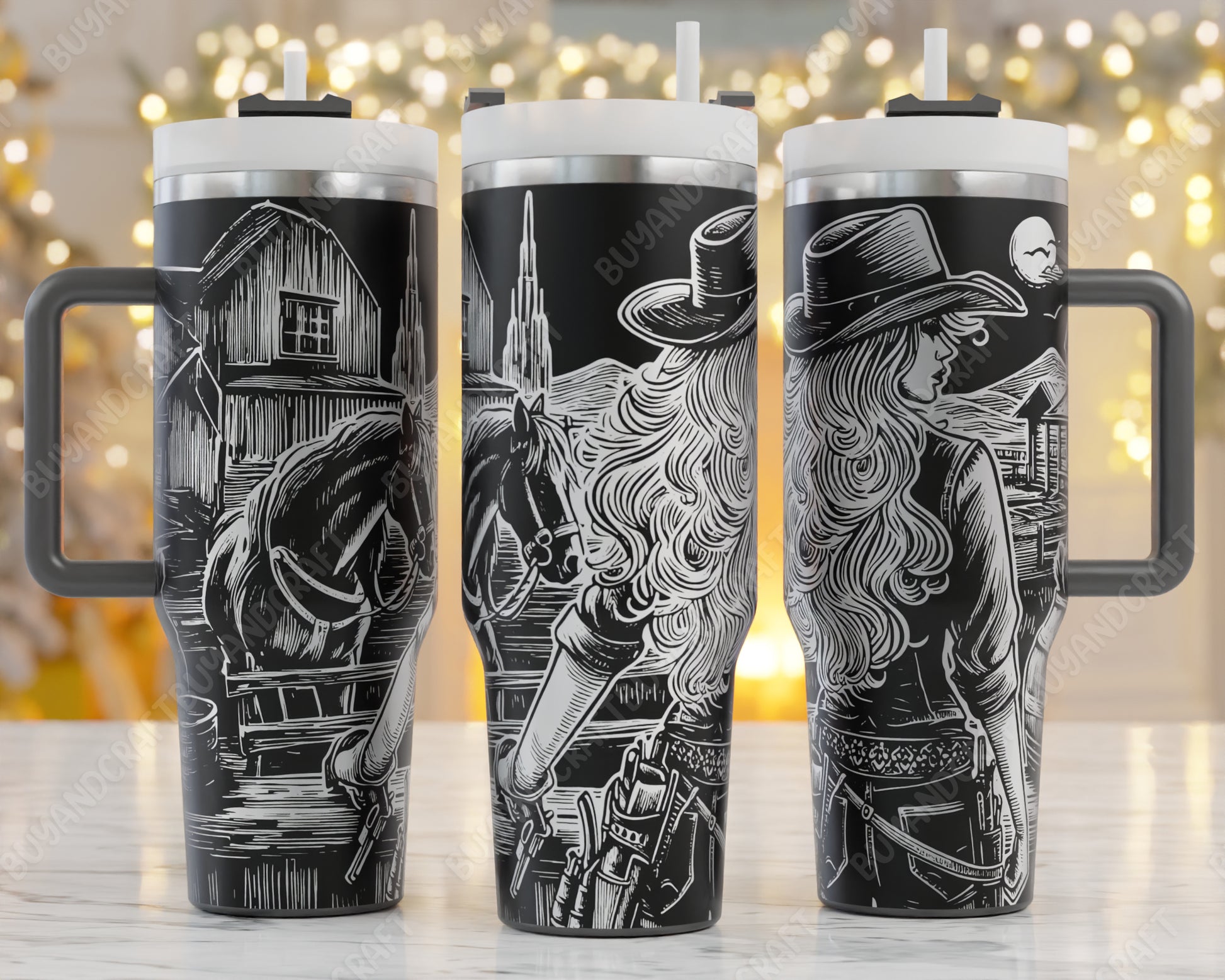 40oz Tumbler Wrap, Western Cowgirl Laser Engraving, Cowboy Girl Svg, 40oz Tumbler Laser Svg, Tumbler Wrap Designs