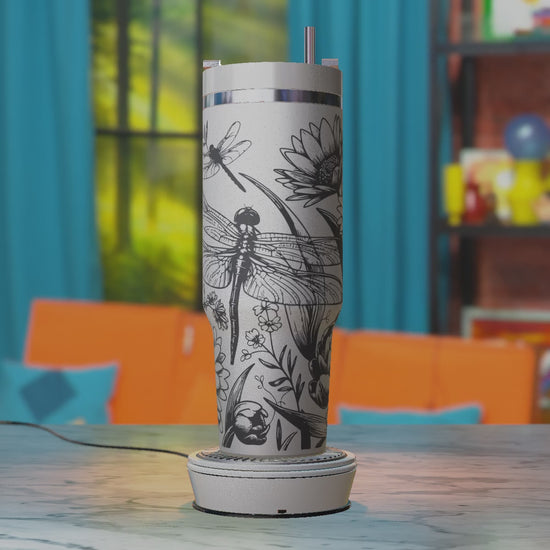 Bring your tumbler creations to life with this Dragonflies with Daisies SVG – Nature 40oz Tumbler Laser Engraving Design File, perfect for laser engraving or etching on 40oz tumblers.