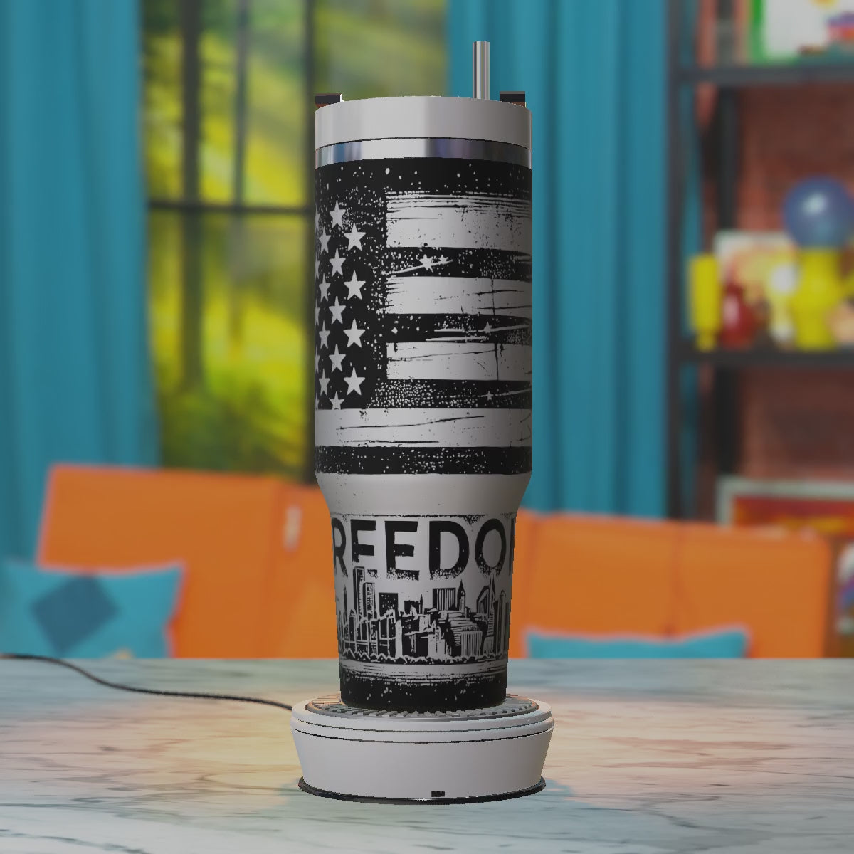 Freedom American Flag Laser Engraving SVG for 40oz Tumbler – Patriotic City Design